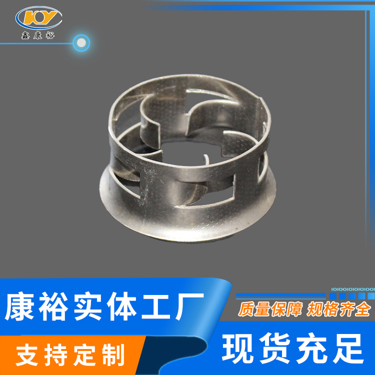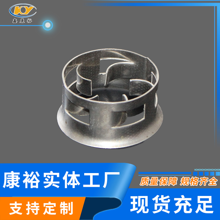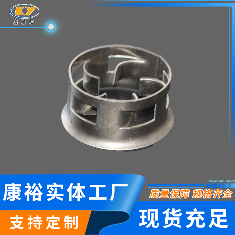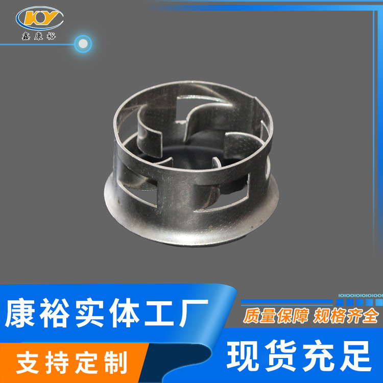 金屬階梯環(huán)至大限度保障其環(huán)面垂直而非平行,這種設(shè)計(jì)運(yùn)用在傳質(zhì)中優(yōu)勢(shì)更為突出。因?yàn)榉磻?yīng)效率取決于接觸面的大小。平行面的設(shè)計(jì)會(huì)使環(huán)內(nèi)側(cè)面接觸不到液體,從而形成干面。干面在傳質(zhì)中幾乎不起作用,但是金屬階梯環(huán)的垂直設(shè)計(jì)大大降低干面的可能性,從而有效的提高效率。